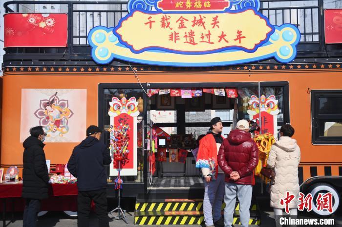 2月8日,甘肅省蘭州市城關(guān)區(qū)“非遺年貨購物月”活動(dòng)現(xiàn)場,游人逛街。中新社記者 李亞龍 攝