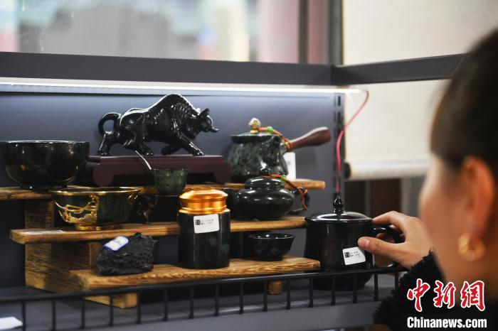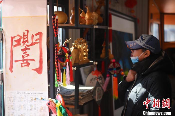 2月8日,甘肅省蘭州市城關(guān)區(qū)“非遺年貨購物月”活動(dòng)現(xiàn)場,游人選購非遺文創(chuàng)產(chǎn)品。中新社記者 李亞龍 攝