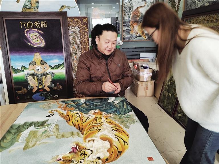 不遠(yuǎn)處的刻葫蘆攤位前,非遺代表性傳承人阮熙越運(yùn)刀如筆,在打磨光潤(rùn)的葫蘆表面刻出圖案。“刻針深淺決定墨色濃淡,蘭州葫蘆皮質(zhì)厚實(shí),才能承載這樣的藝術(shù)語(yǔ)言。”正在體驗(yàn)刻繪的大學(xué)生張萌說(shuō)。從傳統(tǒng)書(shū)畫(huà)到現(xiàn)代動(dòng)漫IP,從擺件到車(chē)掛,近幾年刻葫蘆在創(chuàng)新中走向大眾。據(jù)文旅部門(mén)統(tǒng)計(jì),非遺購(gòu)物月期間刻葫蘆銷(xiāo)售火熱,成為最受游客青睞的“蘭州名片”。