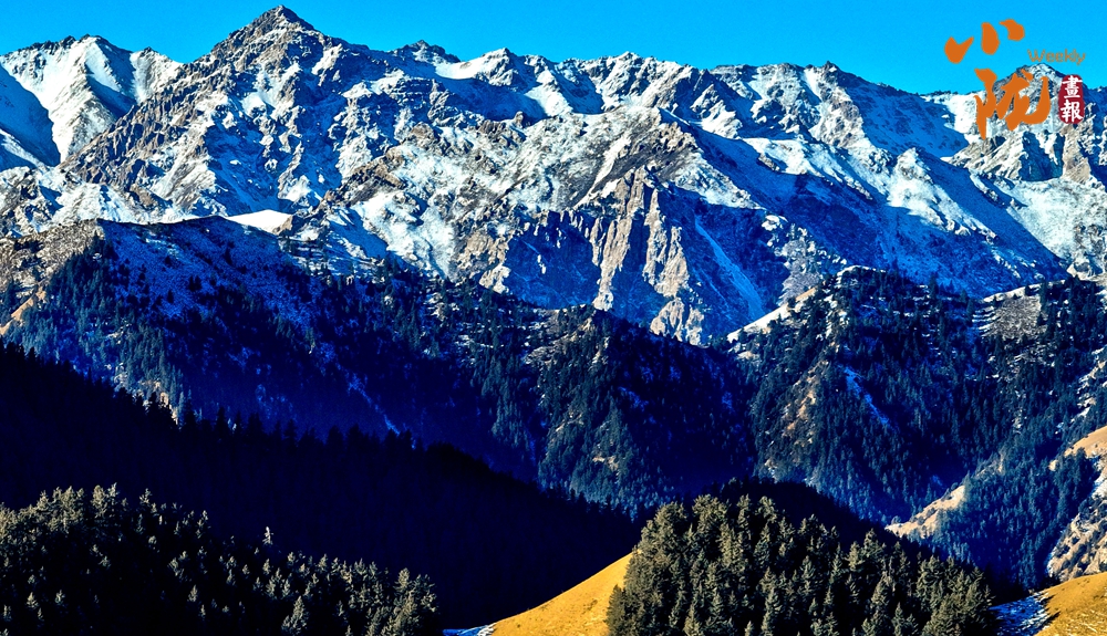 湛藍的天空下,祁連山換上了春雪賦予的銀裝,顯得更加氣勢磅礴。
