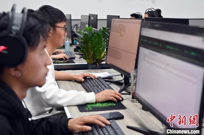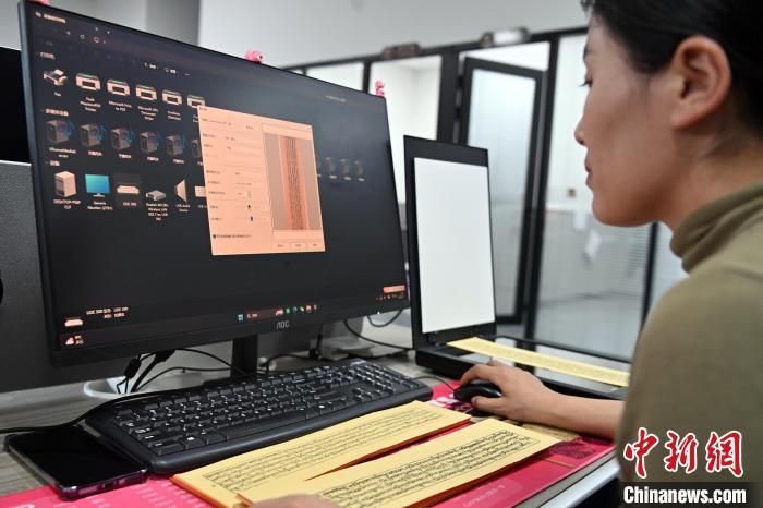 2月27日,在甘肅甘南藏族自治州碌曲縣益西達吉科技有限公司內(nèi),工作人員正在進行藏文古籍數(shù)字化相關工作。該公司主要從事民族古籍數(shù)字化建設和古籍文獻數(shù)據(jù)庫建設,自2019年以來,承擔西藏、四川、甘肅等省區(qū)的藏文古籍數(shù)字化項目。圖為工作人員用該公司研發(fā)的藏文信息處理系統(tǒng)對古籍數(shù)字化內(nèi)容進行檢查。中新社記者 九美旦增 攝