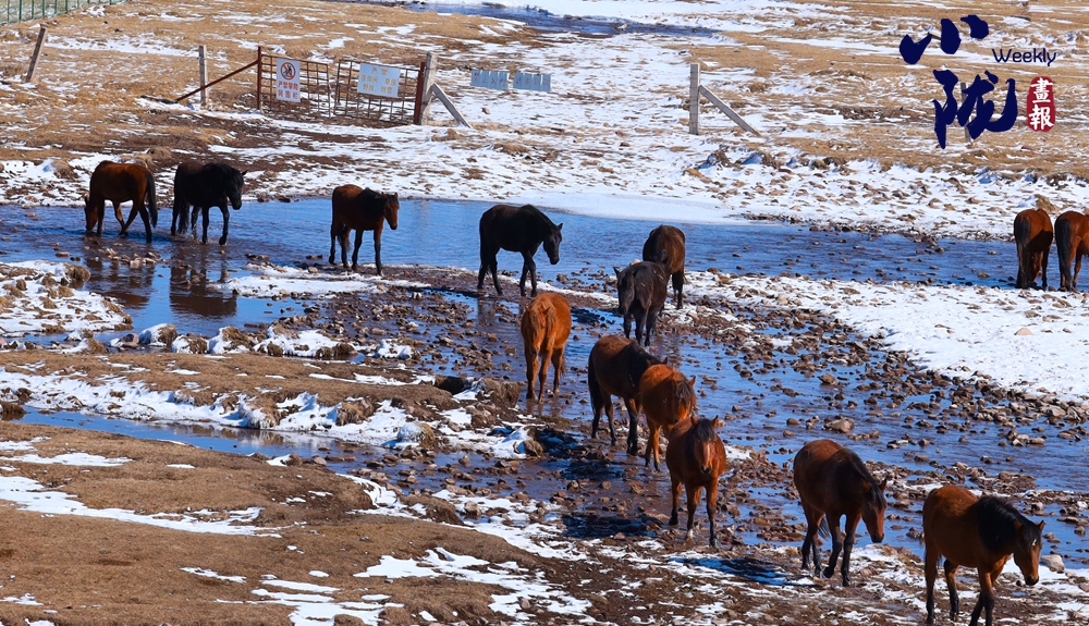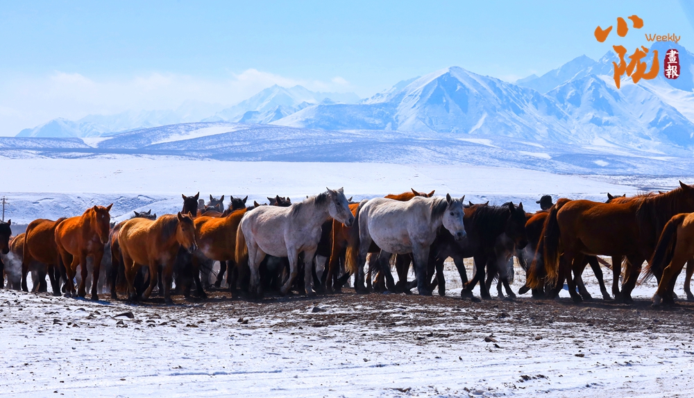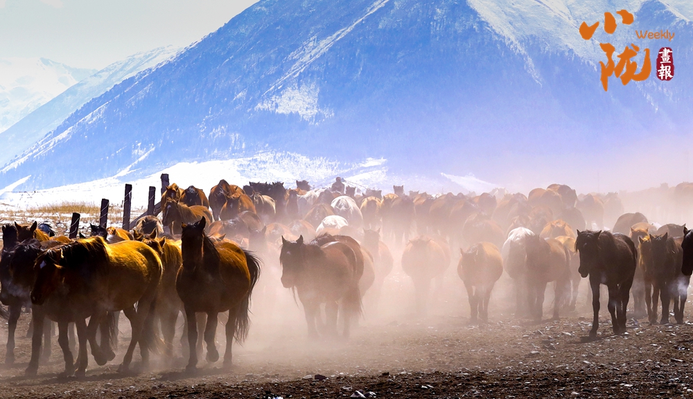 牧民策馬揚鞭,驅(qū)趕著馬群在積雪中飛馳。駿馬矯健的身姿如靈動音符,奏響春日里激昂旋律。