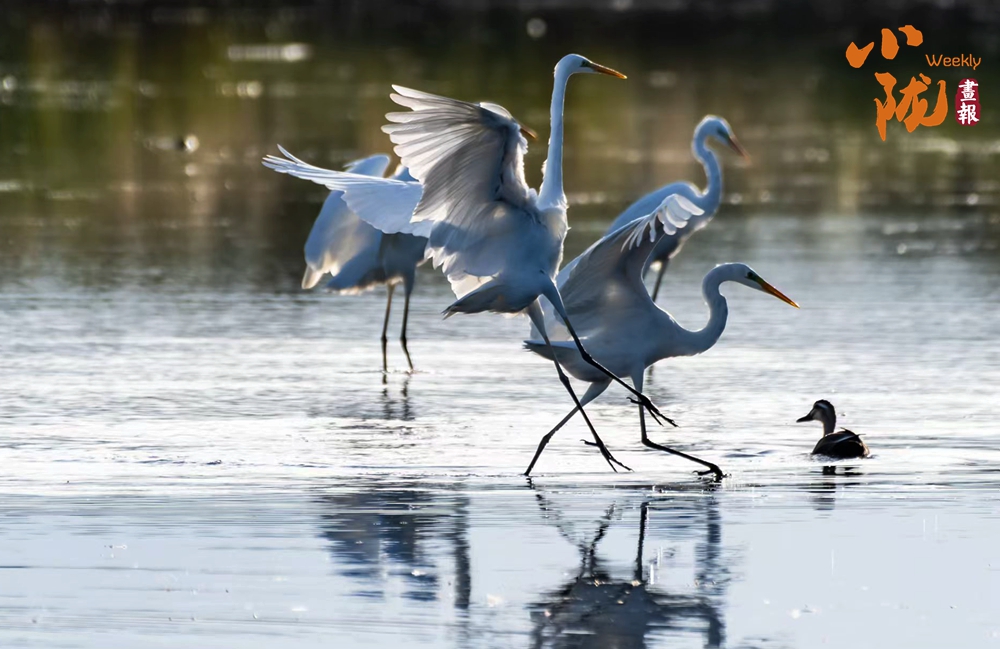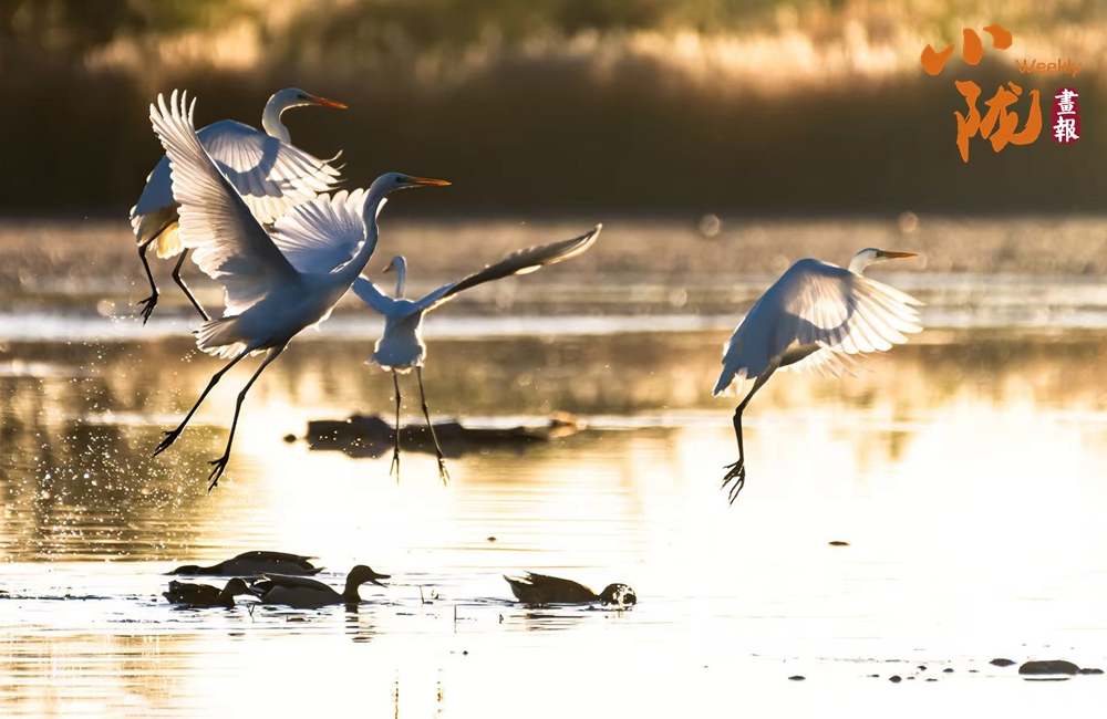 湖中的白鷺翩翩起舞,嬉鬧翻飛,歡快鳴叫,有的停落湖岸,有的游向湖心,有的翻飛空中,為游客帶來(lái)無(wú)盡的歡樂(lè)??带B兒們嬉鬧,仿佛回到童年時(shí)代。自由、自在、生機(jī)無(wú)限,讓每個(gè)人感受到無(wú)窮的生命力量。