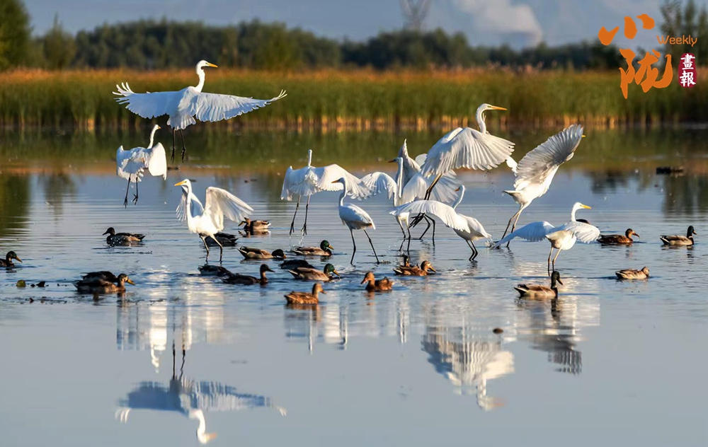 春天,這里萬(wàn)物復(fù)蘇,蘆葦新綠,候鳥歸來(lái),整個(gè)公園充滿生機(jī)。它們依水而居,或在水中游泳和潛水,或在淺水、灘地與岸邊涉行,或在其上空飛行,引得游人們駐足觀看,構(gòu)成一幅人與自然和諧共生的生態(tài)畫卷。