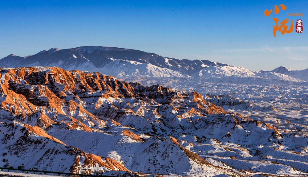 紅色丹霞被春雪覆蓋,在陽(yáng)光的照耀下,紅色山崖層層疊疊、縱橫交錯(cuò),皚皚白雪點(diǎn)綴其中,唯美壯觀。平山湖的山,就在這樣悄無聲息的雪中,幻化成了氣勢(shì)磅礴的丹霞,綿延千里,浩瀚無邊。