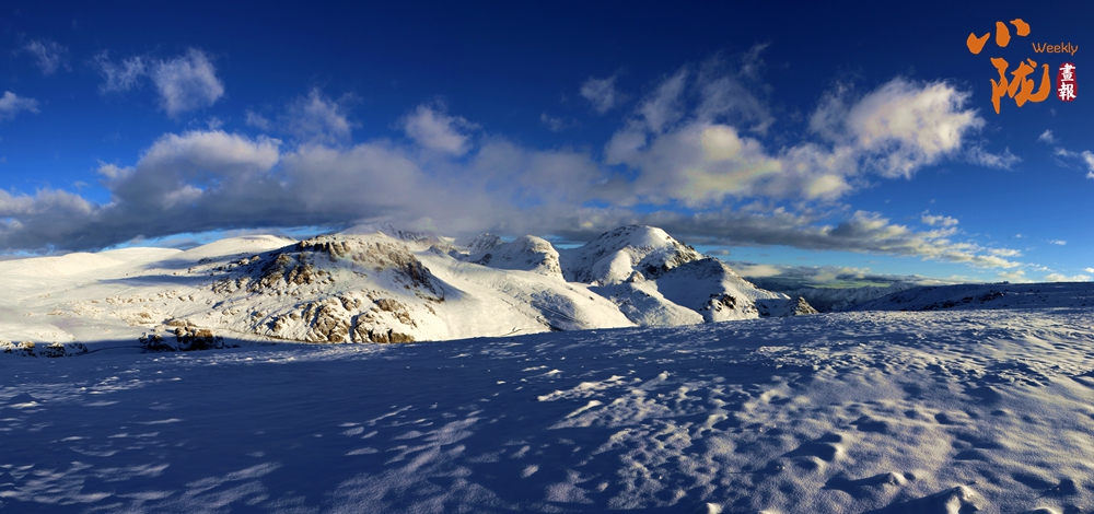 側(cè)目而視,近日一場降雪和夏日閑云相伴相依,近處的雪和遠(yuǎn)處的云相映成趣,共同把天空擦拭得深藍(lán)如鏡。這種“積雪長留峰素裹,浮云飄忽去無邊”的夢幻景色,會(huì)將你平日里積蓄在心頭的那些世俗凡塵濯洗得干干凈凈,有一種遠(yuǎn)離人世的幻覺。