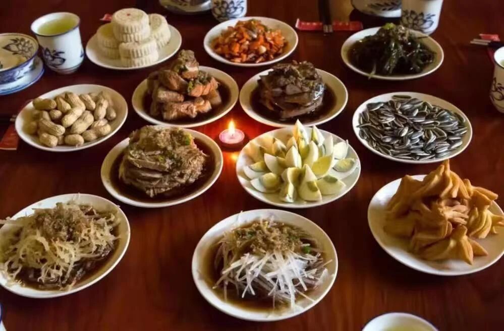 ——“十三花”,寓意胡太后以民為本的執(zhí)政理念;城內四個葷菜,寓意人民四季安康、幸福美滿;骨頭碟和懸肉碟,寓意父骨母血、尊老孝親;肝子碟和雞蛋碟,寓意肝膽相照、心心相?。凰膫€水菜碟子水圍城,寓意順風順水、四方平安;城外瓜籽花生碟,寓意多子多福、多祿多壽;路食和果子,寓意衣豐食足、一路平安;最中間一個大碟全盤為中心,寓意團結聚力、天下一心。