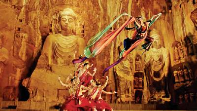 為此,主創(chuàng)人員對(duì)龍門石窟中生動(dòng)多樣的藝術(shù)造型進(jìn)行了全面梳理。“我們請(qǐng)教專家,翻閱、學(xué)習(xí)大量典籍,深入理解龍門石窟‘伎樂天’形象;同時(shí)把握龍門‘金剛’不同于云岡石窟、敦煌壁畫的特點(diǎn),它更為‘中國化’,更加樸實(shí)、有力量。”李鵬說,團(tuán)隊(duì)在此基礎(chǔ)上,進(jìn)一步進(jìn)行藝術(shù)化處理,編排成舞蹈,做到“每一個(gè)造型定格時(shí),體態(tài)在龍門石窟中都有據(jù)可依,可以找到原型”。
