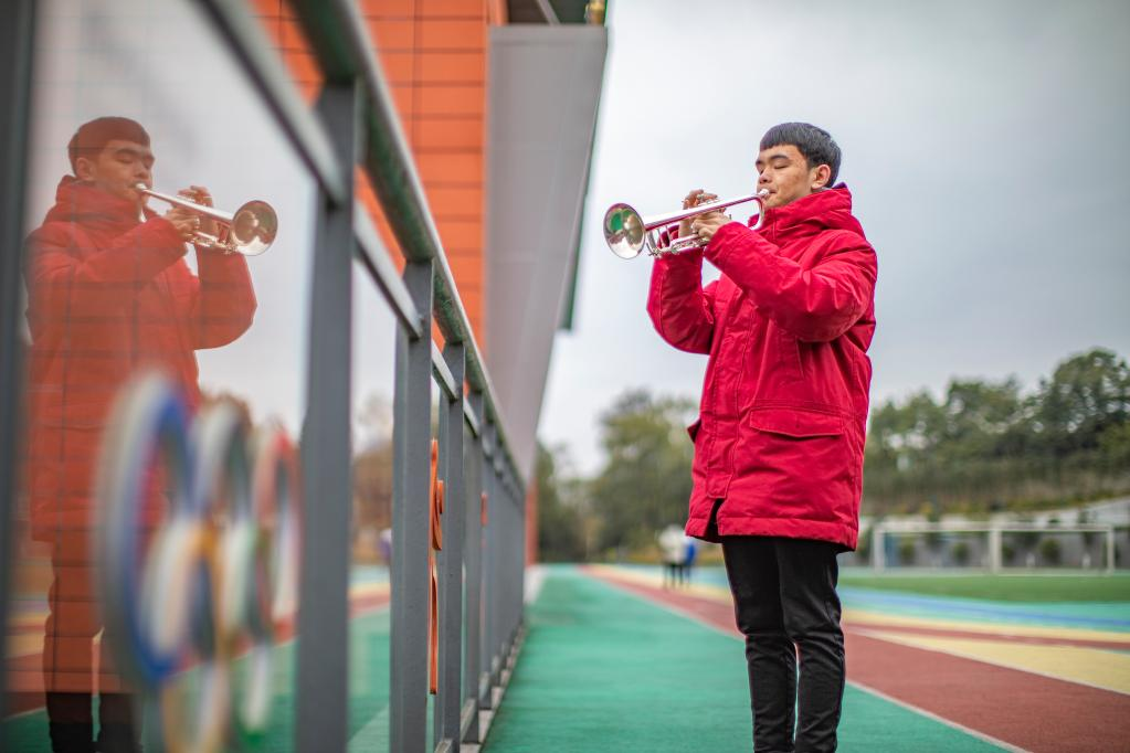 改編后的國(guó)際殘奧委會(huì)會(huì)歌,引子是由小號(hào)奏出高亢嘹亮的號(hào)角。小號(hào)手王太樊,吹響了第一聲旋律。他和盲童小伙伴們,用音樂(lè)“看見(jiàn)”了世界,也讓世界看到他們。