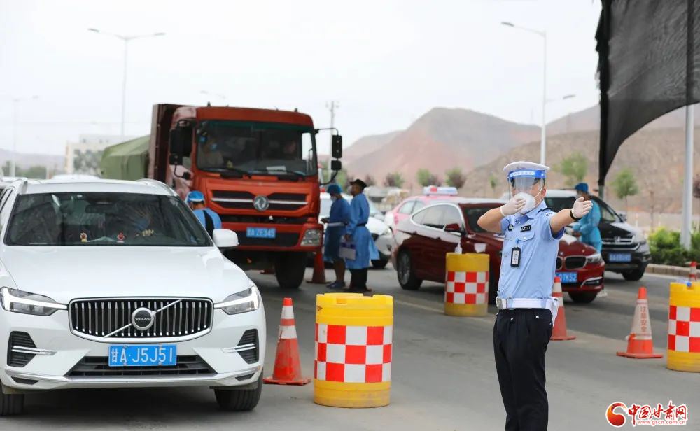韓家河治安檢查站,執(zhí)勤民輔警協(xié)同配合責任成員單位工作人員嚴守蘭州南大門,做好跨地區(qū)出行人員勸導,全力筑牢“外防輸入 內防輸出”安全屏障。楊 釗/攝