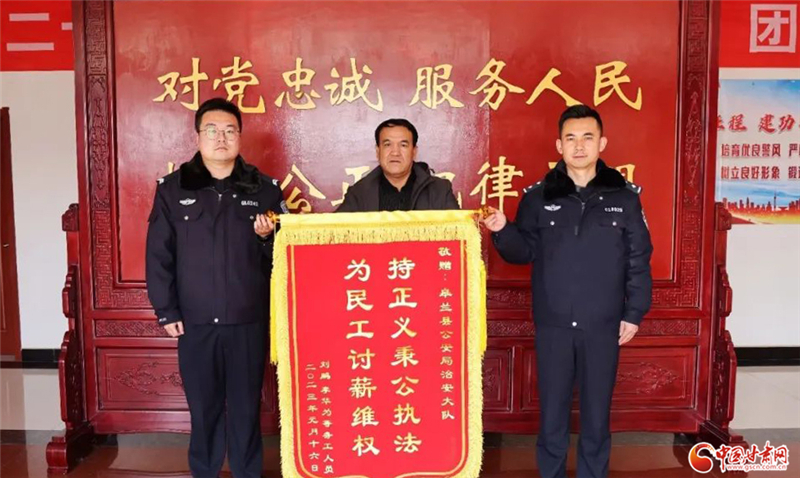 中國甘肅網(wǎng)2月3日訊(本網(wǎng)記者 程?。?月2日,劉先生代表20余名工友將一面印有“持正義秉公執(zhí)法,為民工討薪維權(quán)”的鮮紅錦旗送到了蘭州市皋蘭縣公安局,以此表達對縣局治安管理大隊民警幫其辛苦討要工資的感謝。