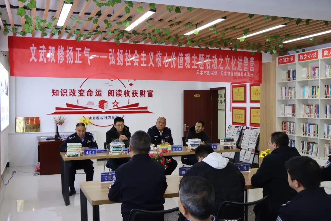 為大力營造全體民輔警愛讀書、讀好書、善讀書的濃厚氛圍,4月24日,在全民讀書月之際,天水市公安局聯(lián)合市圖書館在天水強制隔離戒毒所開展“全民讀書月·文化進警營”活動。