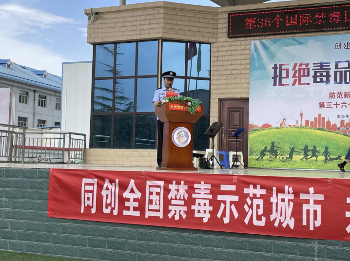 活動以化工街派出所教導張華鵬向廣大師生、參與活動人員領誓拉開帷幕,宣言鏗鏘有力,承諾擲地有聲,一句句誓言,道出了大家對拒絕毒品、遠離毒品的決心。西柳溝街道黨工委副書記袁得琴講話中對全體到場人員作出倡議,希望大家從自身做起積極加入到全社會禁毒宣傳志愿者隊伍中,營造“禁毒斗陣、人人參與”的良好社會氛圍。