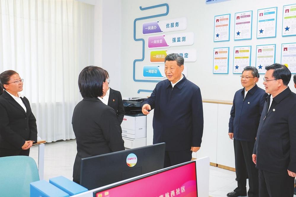 9月10日至13日,中共中央總書(shū)記、國(guó)家主席、中央軍委主席習(xí)近平在甘肅考察。這是11日下午,習(xí)近平在蘭州市安寧區(qū)棗林西社區(qū)黨群服務(wù)中心考察。新華社記者王曄