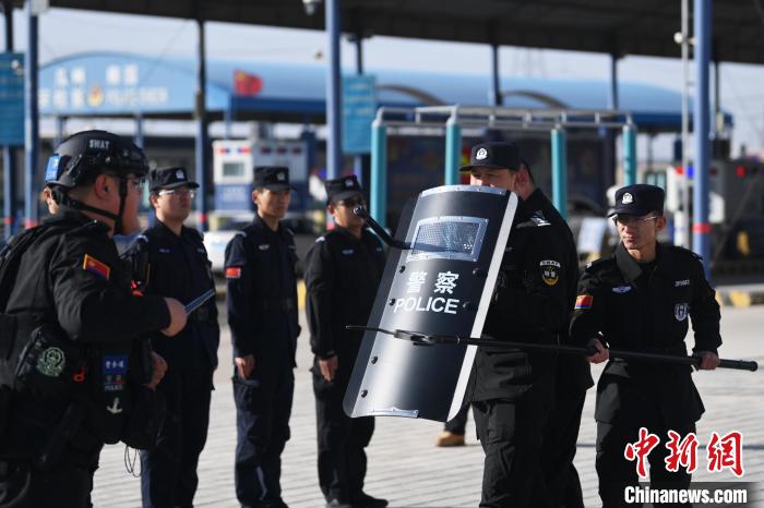 1月7日,甘肅省酒泉市瓜州縣公安局柳園公安檢查站內(nèi),執(zhí)勤民輔警進(jìn)行日常演練。李亞龍 攝
