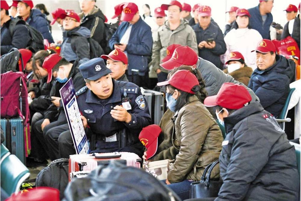 為了保障務(wù)工人員安全順暢出行,蘭州鐵路公安處定西北站派出所積極與定西北車(chē)站、客運(yùn)部門(mén)通聯(lián),專(zhuān)門(mén)開(kāi)辟“綠色通道”,暢通進(jìn)站、安檢、檢票等乘車(chē)環(huán)節(jié),劃定專(zhuān)門(mén)候車(chē)進(jìn)站區(qū)域,增派警力引導(dǎo)務(wù)工人員有序進(jìn)站。