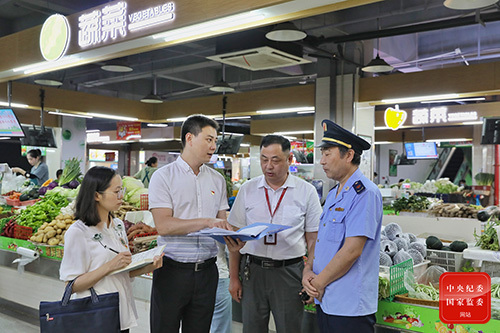 圖為南京市棲霞區(qū)紀(jì)委監(jiān)委針對“陽光惠民”監(jiān)管平臺上的預(yù)警信息,組織力量核查該區(qū)星級農(nóng)貿(mào)市場獎(jiǎng)勵(lì)資金撥付方面的問題線索。