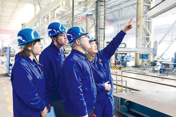 圖為蘭州蘭石集團(tuán)有限公司紀(jì)檢監(jiān)察干部在煉化公司裝焊車間監(jiān)督重點(diǎn)項(xiàng)目推進(jìn)情況。俞駿濤 攝