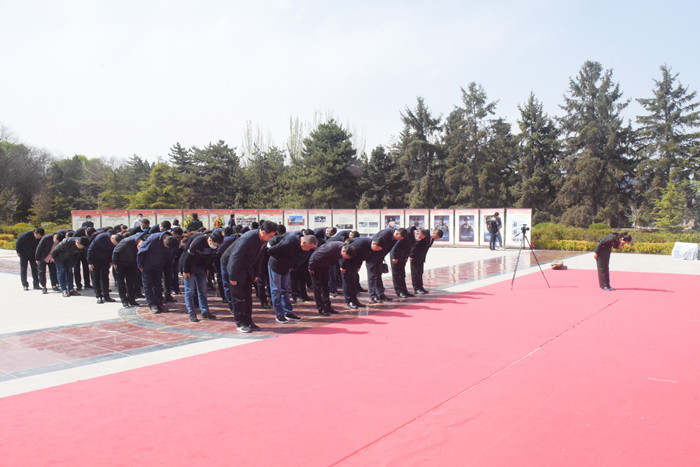 15時許,在蘭州烈士陵園,全體黨員干部懷著崇敬的心情瞻仰了英雄紀念碑,并向“衛(wèi)國戍邊”英雄陳紅軍烈士敬獻花籃并默哀。