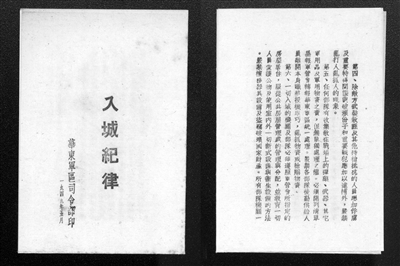 1949年5月,華東軍區(qū)司令部印發(fā)的《入城紀律》。桂星星 供圖