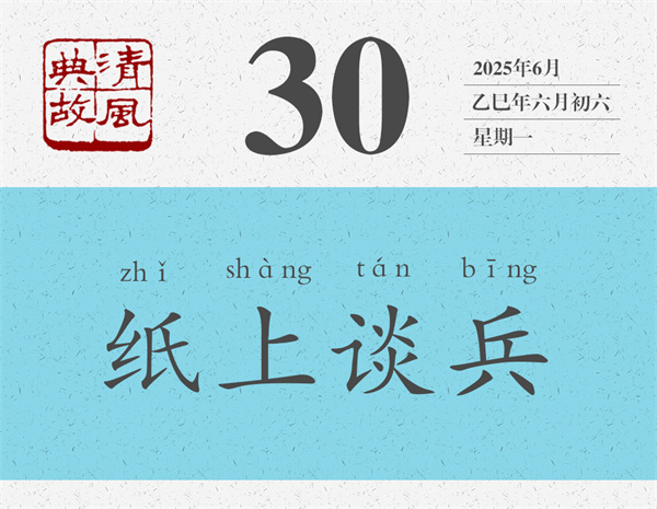 這就是歷史上著名的長(zhǎng)平之戰(zhàn)。后人即根據(jù)趙括只會(huì)照搬兵書而不知變通之事,引申出“紙上談兵”之典,比喻只會(huì)紙上空談,而不能解決實(shí)際問(wèn)題,或者只會(huì)空發(fā)議論,而得不到真正落實(shí)。清人張問(wèn)陶詩(shī)《即事》:“紙上談兵壁上觀,立言先慮立功難。”