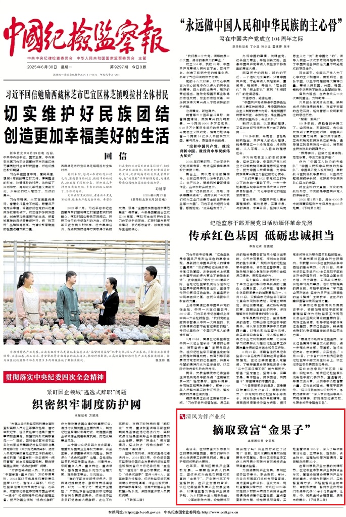 《中國紀(jì)檢監(jiān)察報(bào)》2025年6月30日 第1版