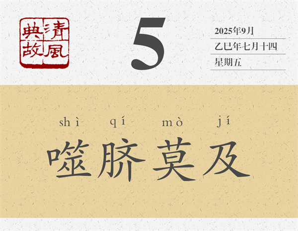 楊伯峻認(rèn)為,“噬齊”是當(dāng)時(shí)的俗語(yǔ)。齊,通“臍”,即肚臍。“噬齊”即用嘴去咬自己的肚臍,意謂夠不著,咬不到。后世則以“噬臍”或“噬臍莫及”為典,比喻再后悔也來(lái)不及了。葉夢(mèng)得詩(shī)《懷西山》:“平生幾濡首,末路多噬臍。”