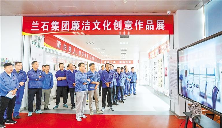蘭石集團(tuán)黨員干部職工參觀廉潔文化創(chuàng)意作品展。蘭石集團(tuán)紀(jì)委供圖