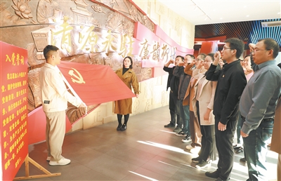 廣西壯族自治區(qū)柳城縣通過(guò)開展多種形式學(xué)習(xí)教育,推動(dòng)黨員、干部鑄牢對(duì)黨絕對(duì)忠誠(chéng)政治品格。圖為該縣黨員干部到廉政教育基地開展主題黨日活動(dòng),重溫入黨誓詞。陳婕 攝