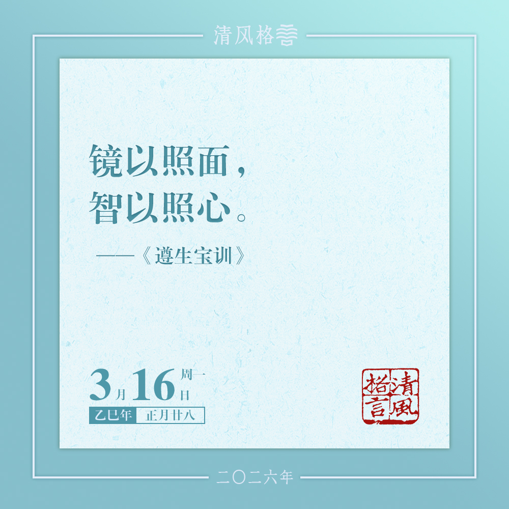 “鏡以照面,智以照心”,鏡明則垢不染,容貌便看得清楚;智明則心不染,遇事則看得透徹。事在人為,人以智行,智行則客觀、審慎,能夠看透本質(zhì),明辨是非曲直。像吳隱之這樣“處貪泉而覺爽”,一個(gè)真正明智的人,內(nèi)心擁有純凈與清醒,是不會被欲望和雜念所迷惑的。智明則心能定,心定則萬事明。
