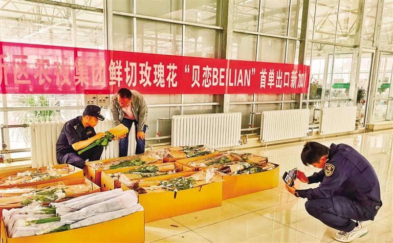 海關(guān)工作人員檢驗檢疫新區(qū)鮮切玫瑰花 張建平 攝