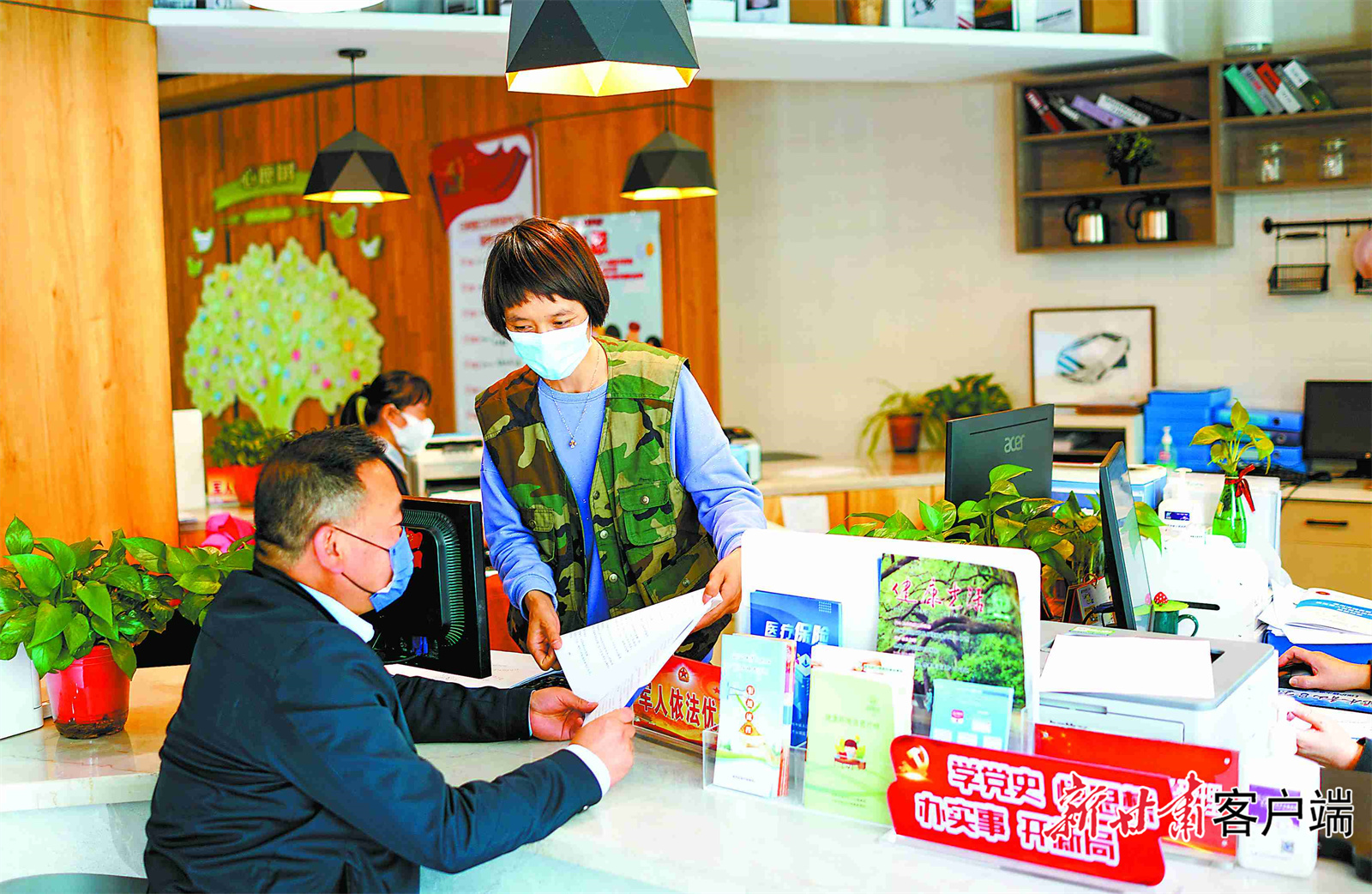 蘭州市城關(guān)區(qū)白銀路街道甘家巷社區(qū)全科受理臺(tái)上,社區(qū)工作人員熱情解答辦事群眾提出的問(wèn)題。