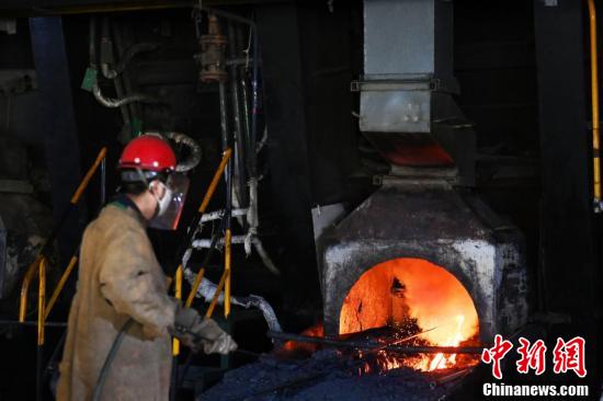 金川集團鎳冶煉廠閃速爐車間內(nèi),工作人員穿戴專業(yè)防護裝備觀察轉爐天然氣烤爐。