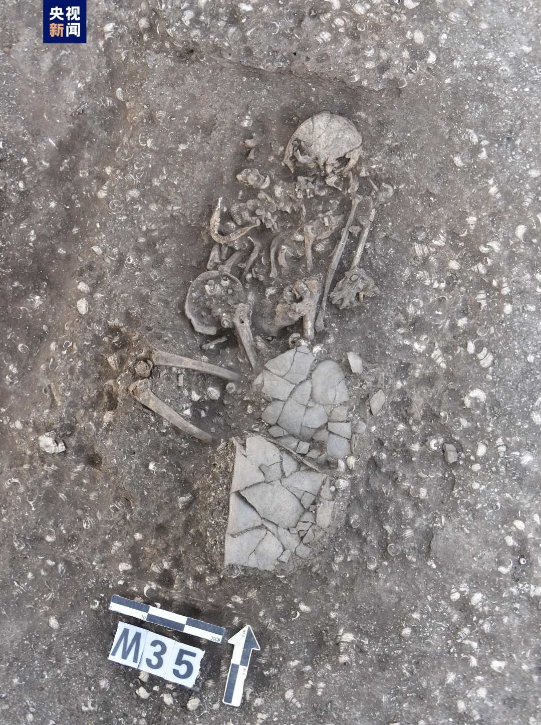 古城村遺址面積約4.2萬平方米,現(xiàn)存的貝丘堆積最厚處達(dá)6.5米,由大量尾部被敲破的螺螄殼與灰土層交替堆疊形成。碳十四測(cè)定年代為距今3600至2500年,約相當(dāng)于中原地區(qū)的商代至兩周時(shí)期。商代遺存可分為早晚兩段,早段發(fā)現(xiàn)保存完整的橢圓形環(huán)壕聚落,由中心臺(tái)地、外圍環(huán)壕和護(hù)坡組成,中心臺(tái)地面積約27000平方米,環(huán)壕和護(hù)坡周長(zhǎng)約600米,這種聚落格局一直延續(xù)至兩周時(shí)期。商代晚段發(fā)現(xiàn)一批土坑墓和甕棺葬。兩周時(shí)期的遺存以房址、螺殼堆、灰燼、活動(dòng)面等居住類遺跡為主,房址多為方形半地穴式。出土青銅器、陶器、玉器、石器、骨器、木器等文物4000余件。