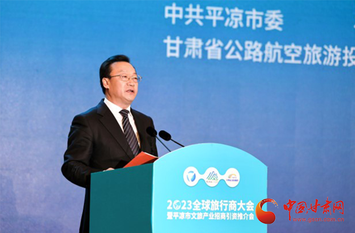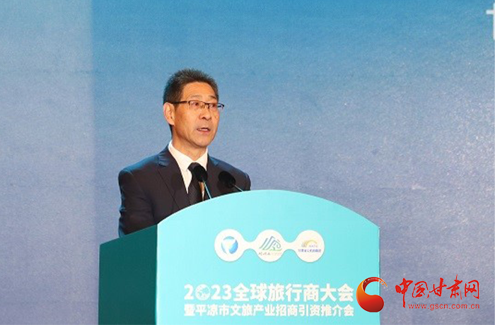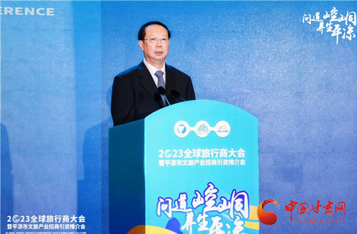 何效祖在致辭中說(shuō),平?jīng)鍪歉拭C向東開(kāi)放的“門戶”城市,是風(fēng)景宜人的旅游城市,是甘肅布局的文旅康養(yǎng)基地和支撐“一核三帶”區(qū)域發(fā)展格局中的重要支點(diǎn),擁有崆峒山、大云寺·王母宮、瑤池溫泉等眾多聞名遐邇的人文和自然景觀。今天,我們與平?jīng)鍪形姓?、中?guó)旅行社協(xié)會(huì)、甘肅公航旅集團(tuán)一道搭建平臺(tái),誠(chéng)邀各位嘉賓走進(jìn)甘肅、深入平?jīng)?,組織開(kāi)展宣傳推介、洽談合作、展示展銷、考察踩線等系列活動(dòng),就是要引導(dǎo)大家深度感知甘肅高質(zhì)量發(fā)展的強(qiáng)烈愿望,實(shí)地觸摸甘肅文旅如火如荼的生動(dòng)實(shí)踐,誠(chéng)懇表達(dá)隴原兒女“視企業(yè)家為最寶貴財(cái)富”的真誠(chéng)合作和赤誠(chéng)服務(wù)之心。我們衷心希望,廣大中外旅行商和文旅專家、文旅企業(yè)家以本次大會(huì)為契機(jī),加強(qiáng)交流互鑒,深化務(wù)實(shí)合作,加大在甘投資力度,組織更多游客到甘肅觀光旅游,帶動(dòng)更多優(yōu)質(zhì)文旅企業(yè)和項(xiàng)目落戶甘肅,合力譜寫甘肅文旅高質(zhì)量發(fā)展的嶄新篇章!