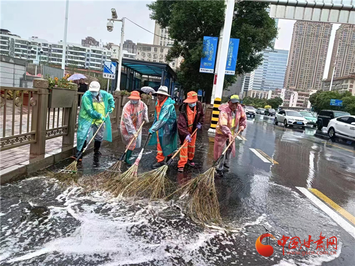 蘭州市出動(dòng)環(huán)衛(wèi)工人1.2萬(wàn)余人次 開展道路排澇清淤工作