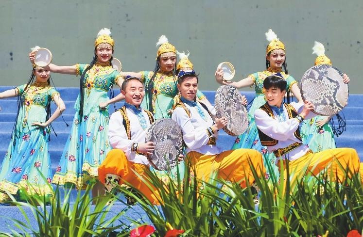 隨著曼妙激昂的舞蹈《石榴花開》上演,這場屬于“花兒”的盛會正式啟幕。隨后,《雪白的鴿子》《巴西古溜溜》、優(yōu)雅大氣的舞蹈《吉祥歡歌》《絲路民族風》《今夜草原有雨》《白牡丹令》等經典歌舞節(jié)目精彩上演,贏得臺下陣陣掌聲。甘肅籍民謠歌手張尕慫帶來的《等風來》更是將現(xiàn)場氣氛推向高潮,來自各個民族的數(shù)千觀眾沉浸在這場非遺文化盛宴中。