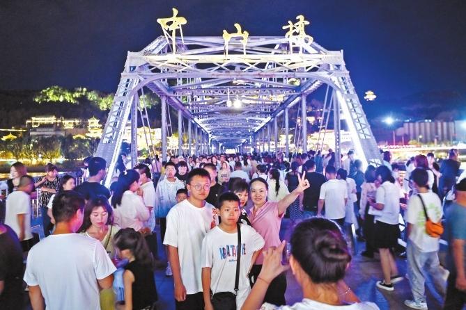 入夏以來,全國各地熱浪襲人,但絲路重鎮(zhèn)蘭州以23-26℃的平均氣溫成為各地游客消夏避暑勝地,外來游客涌入金城,尤其是暑假期間呈現(xiàn)出井噴式增長。依托中山橋、白塔山、黃河母親、黃河樓等重要旅游景點資源,黃河之濱成為外來游客打卡首選,“夜游黃河”“黃河頌·大有蘭州”光影秀火爆出圈,沿河茶攤、休閑茶吧、露營基地更是出現(xiàn)“一桌難求”的現(xiàn)象。