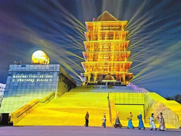 在黃河樓景區(qū),平時只有周末觀演的“黃河頌·大有蘭州”多媒體實景演出開啟了為期一個月的常態(tài)化巡演,每晚9時,璀璨的光影映襯著巍峨雄壯的黃河樓,在3D Mapping多媒體技術(shù)的加持下,帶給游客難忘的光影夜游體驗。而近日黃河樓入園游客較平時也增長了3倍之多,登樓參觀人數(shù)日均達到3000人次。