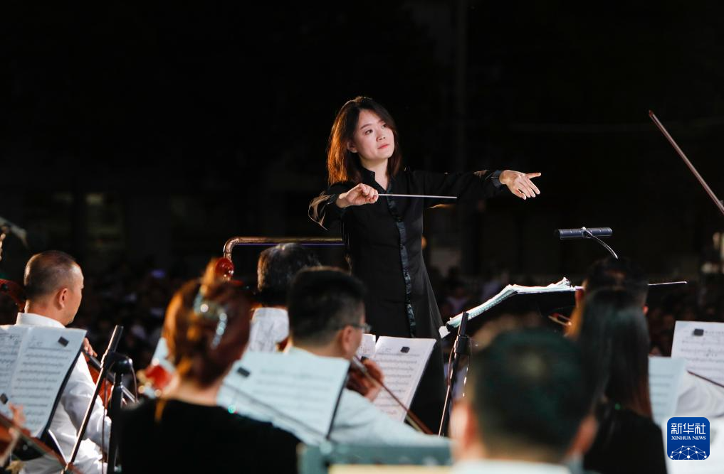7月31日,甘肅交響樂團(tuán)首席指揮王璐在指揮演奏。新華社記者 方欣 攝