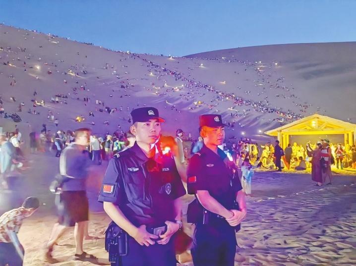 “現在的游客數量每天都在增長,基本上每天都有4萬多人入園。凌晨時分,鳴沙山上仍然是繁星點點、燈光閃爍,游客自發(fā)組織的演唱會讓在場的人都流連忘返。我們現在早上天不亮就上崗,晚上要保證每一名游客安全出園才能下班。”鳴沙山派出所所長達春平說。