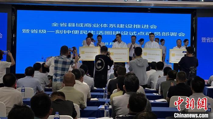 8月3日,甘肅省縣域商業(yè)體系建設(shè)推進(jìn)會暨省級一刻鐘便民生活圈建設(shè)試點動員部署會在蘭州舉行。甘肅省商務(wù)廳為第二批“省級示范步行街”和“甘肅老字號”授牌。中新社記者 馮志軍 攝