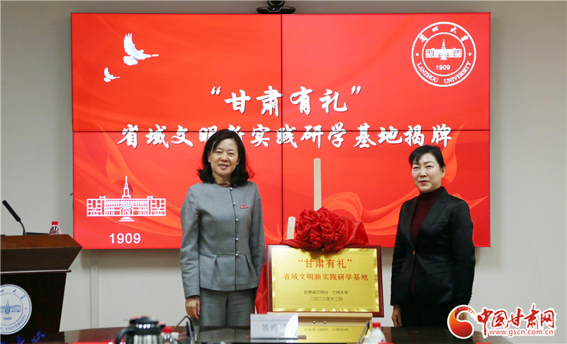 省文明辦主任李慧玲和蘭州大學副校長曹紅分別致辭并簽訂備忘錄,共同為“甘肅有禮”省域文明新實踐研學基地揭牌。