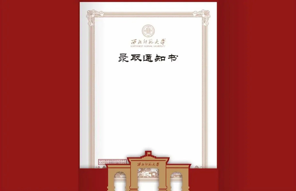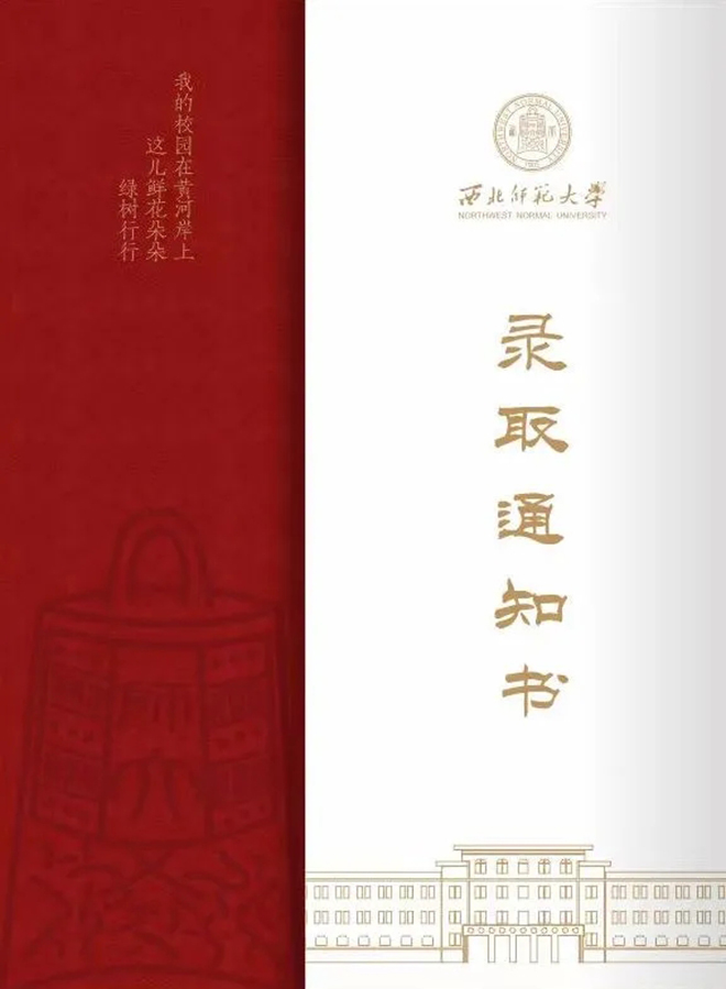 2024年的本科生錄取通知書外層依然延續(xù)了傳統(tǒng)師大紅,搭配金色的文字,盡顯莊重大氣。內(nèi)里以白色為底,淺棕色為框,百廿師大的厚重底蘊躍然紙上。
