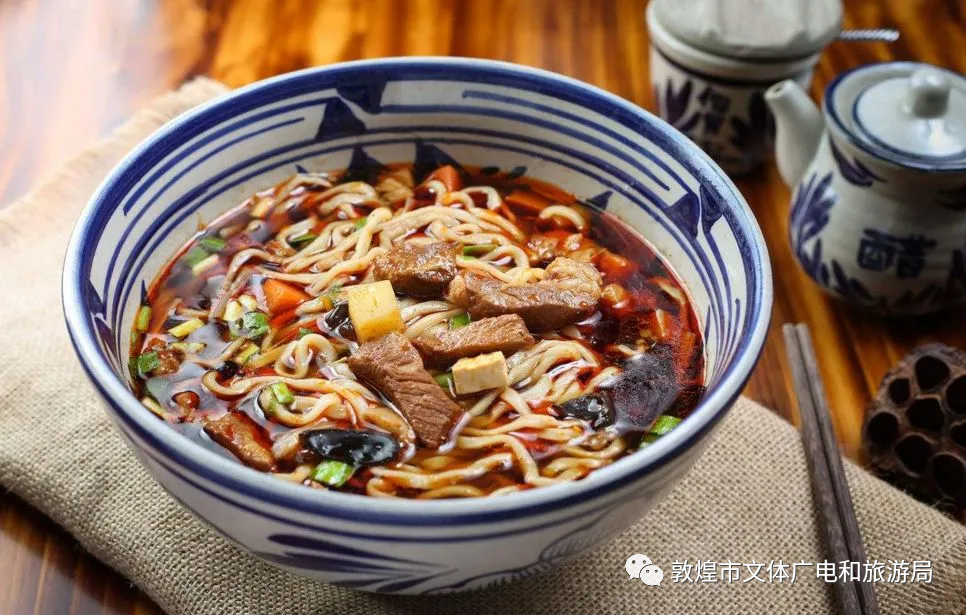 臊子面,是敦煌美食中的經(jīng)典代表。細(xì)長的面條搭配上濃郁的臊子湯,口感醇厚,香氣撲鼻。