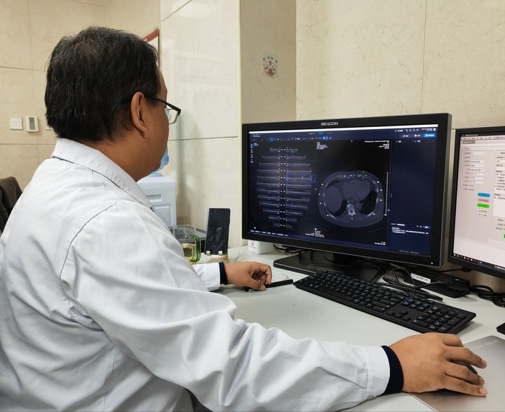 在寧夏回族自治區(qū)銀川市第一人民醫(yī)院,放射科副主任醫(yī)師姜榮興打開電腦上的人工智能輔助診斷系統(tǒng),導入病患CT影像資料后,輕點鼠標,系統(tǒng)瞬間完成初篩——24根肋骨逐一呈現(xiàn)在屏幕上,骨折和疑似骨折的部位一目了然。醫(yī)生再對初篩結果作出診斷處理,全程用時不到4分鐘。