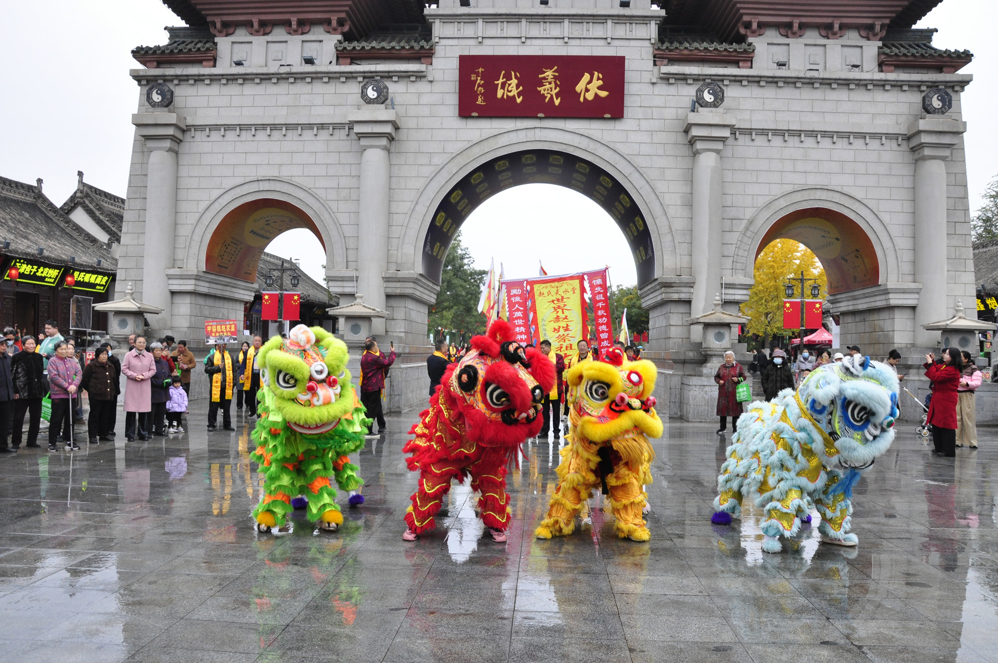 上午九點,趙氏天水堂內旌旗招展、鼓樂同鳴。趙氏宗親代表隊及舞獅隊、鑼鼓隊、嗩吶隊、腰鼓隊等前往伏羲廟拜謁中華人文始祖伏羲。隨后,祭祖大典在古樸大方、莊嚴肅穆的趙氏天水堂正式拉開帷幕。