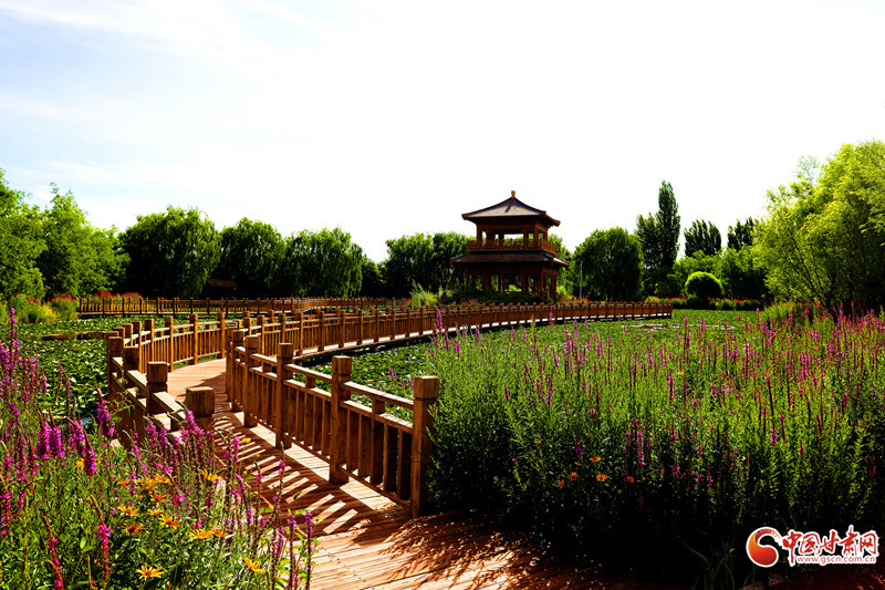7月8日,雨后的臨澤小城初晴,天空湛藍(lán)。棗鄉(xiāng)風(fēng)情園的睡蓮池畔,成為市民和游客的熱門去處。古亭倒影在平靜的池水中,與盛開的睡蓮相映成趣。市民游客坐在池邊長(zhǎng)椅上閑聊,鍛煉的人們也沉浸在這愜意的氛圍中。