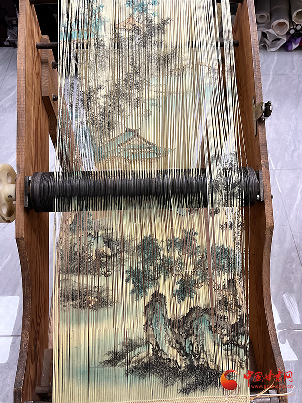 此外,魏巍還改良了織架結構,讓編織過程更加順手,并嘗試將莊浪本地的梯田、關山風光“織”入畫中,為古老的技藝注入了濃郁的時代氣息與鄉(xiāng)土情懷,讓非遺真正“活”在當下的生活里。