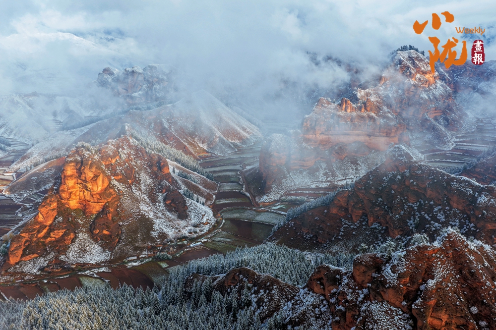 當(dāng)陽光漫灑,積雪映襯著巖層的斑斕紋理,山間霧氣如輕紗浮動,仿佛大地正以靜默完成一場季節(jié)的儀式。這片雪中丹霞,既存地質(zhì)之雄魄,亦添冬日的空靈詩意。